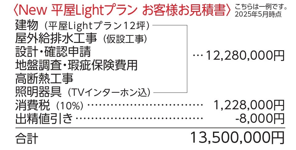 資材や運搬費等の価格高騰が続く中でも価格を抑え、年中快適に過ごすことが出来る平屋Lightプラン。