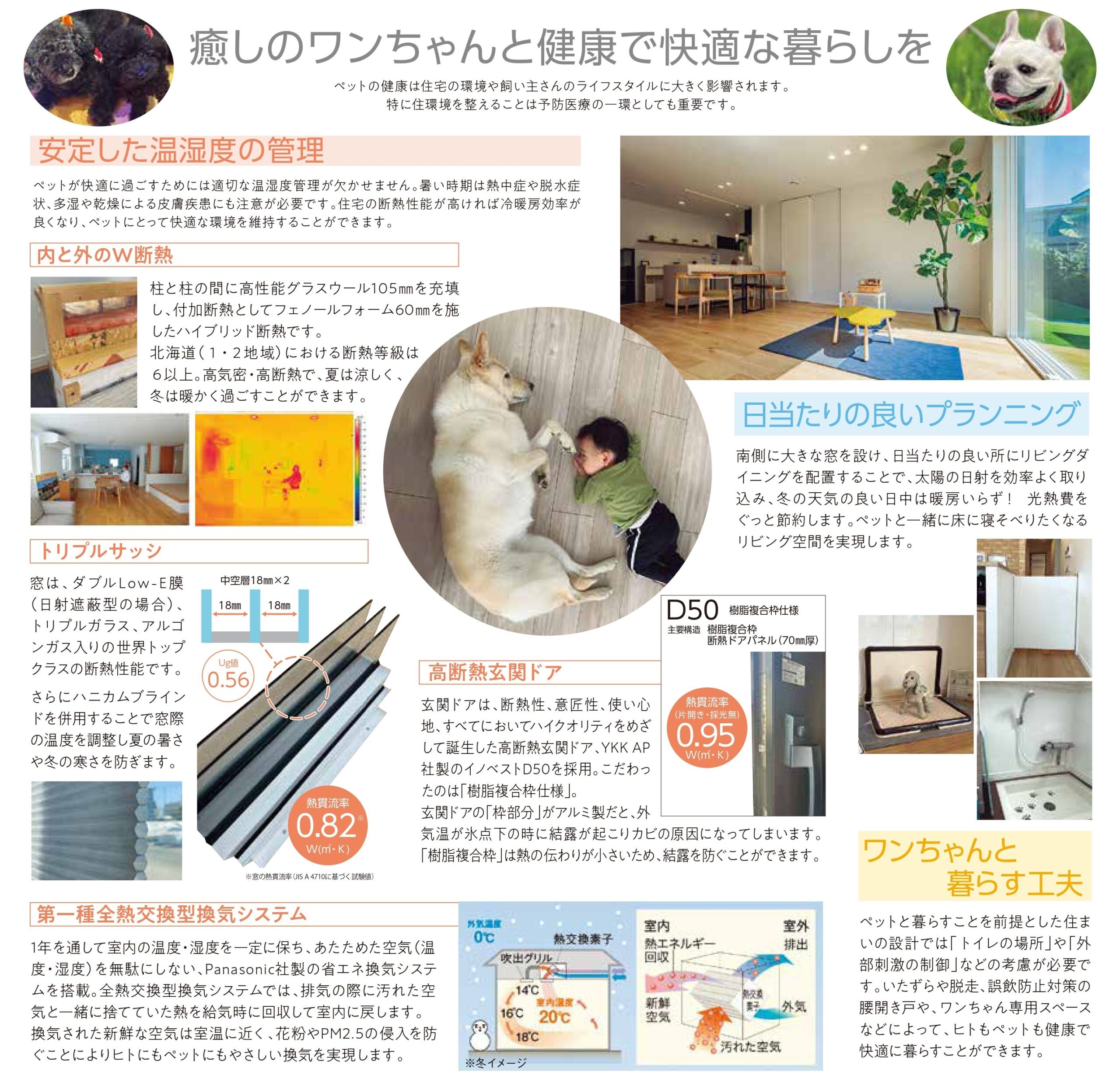 エネルギーを節約しながら、ワンちゃんと床にごろ寝したくなる空間を実現します。