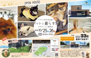 お庭ドッグラン体験・平屋&二階建てのモデルハウス見学・ペットの暮らしアイデア紹介など、