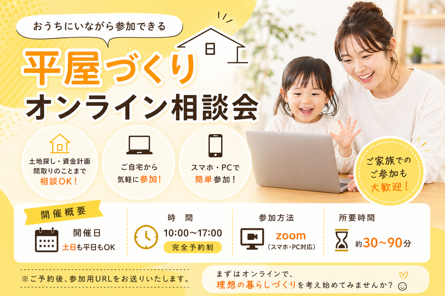 「平屋づくりオンライン相談会」 をご用意いたしました!